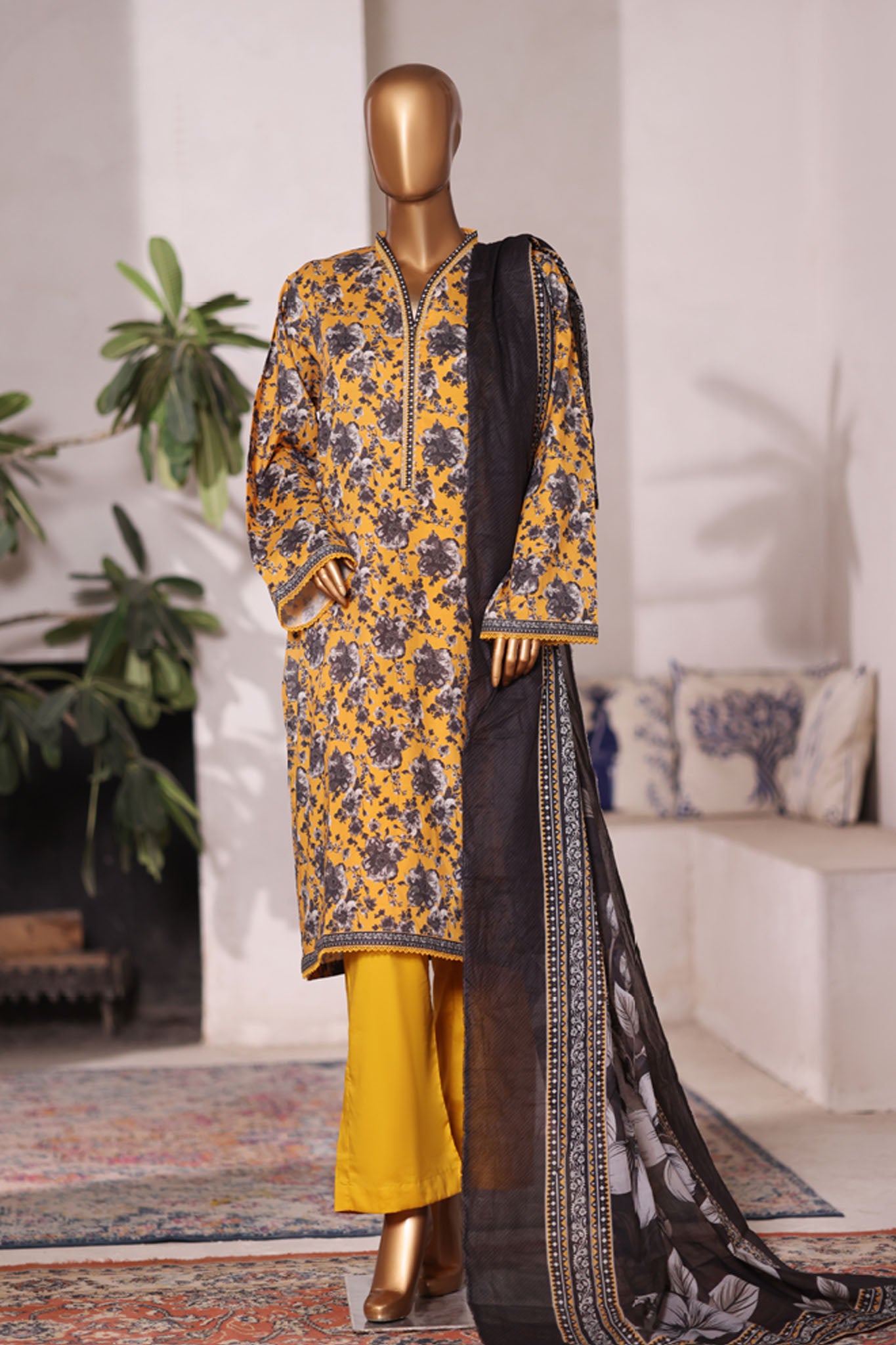 Bin Saeed Stitched 3 Piece Printed Cotton Vol-03 Collection'2025-WC-2416-Yellow