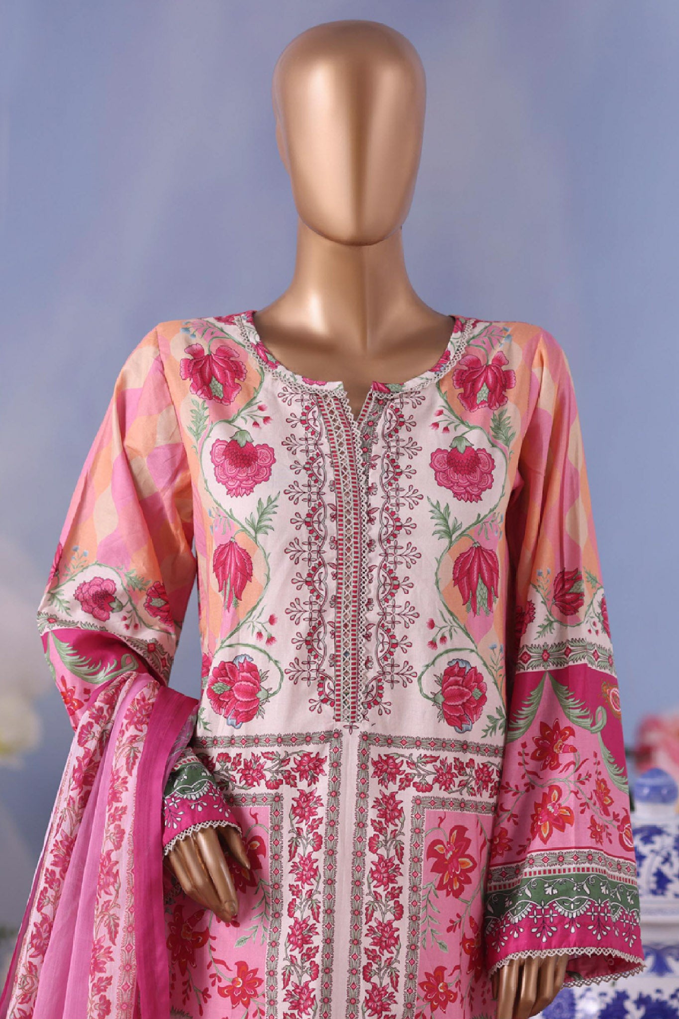 Bin Saeed Stitched 3 Piece Exclusive Printed Cotton Vol-04 Collection'2025-WC-2488-Pink