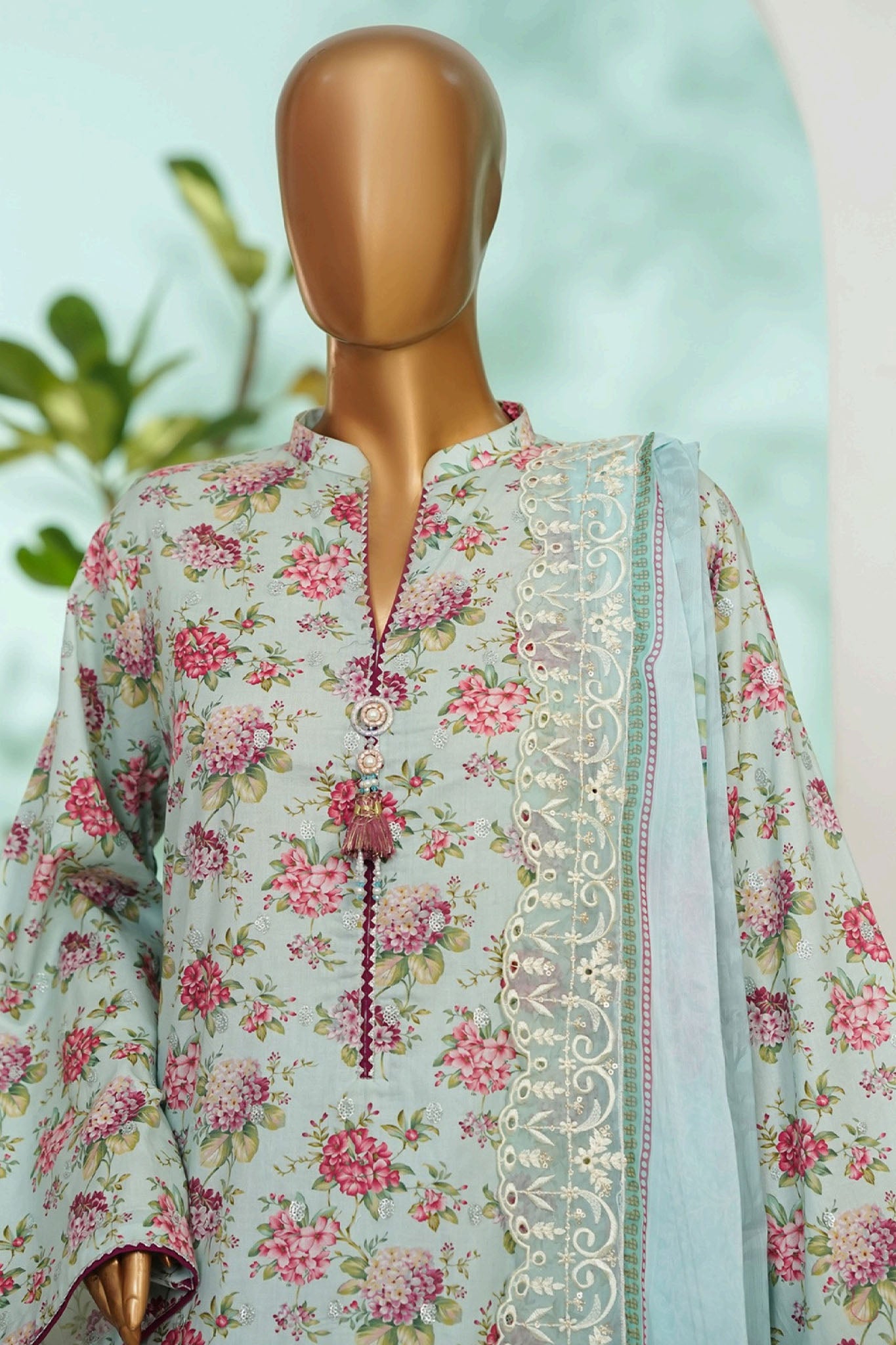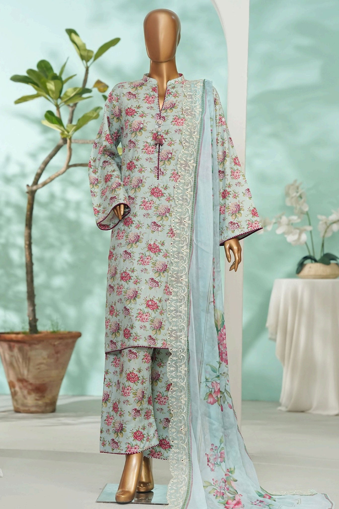 Bin Saeed Stitched 3 Piece Exc Luxury Lawn With Farshi Shalwar Suit-WC-2682 FEROZI