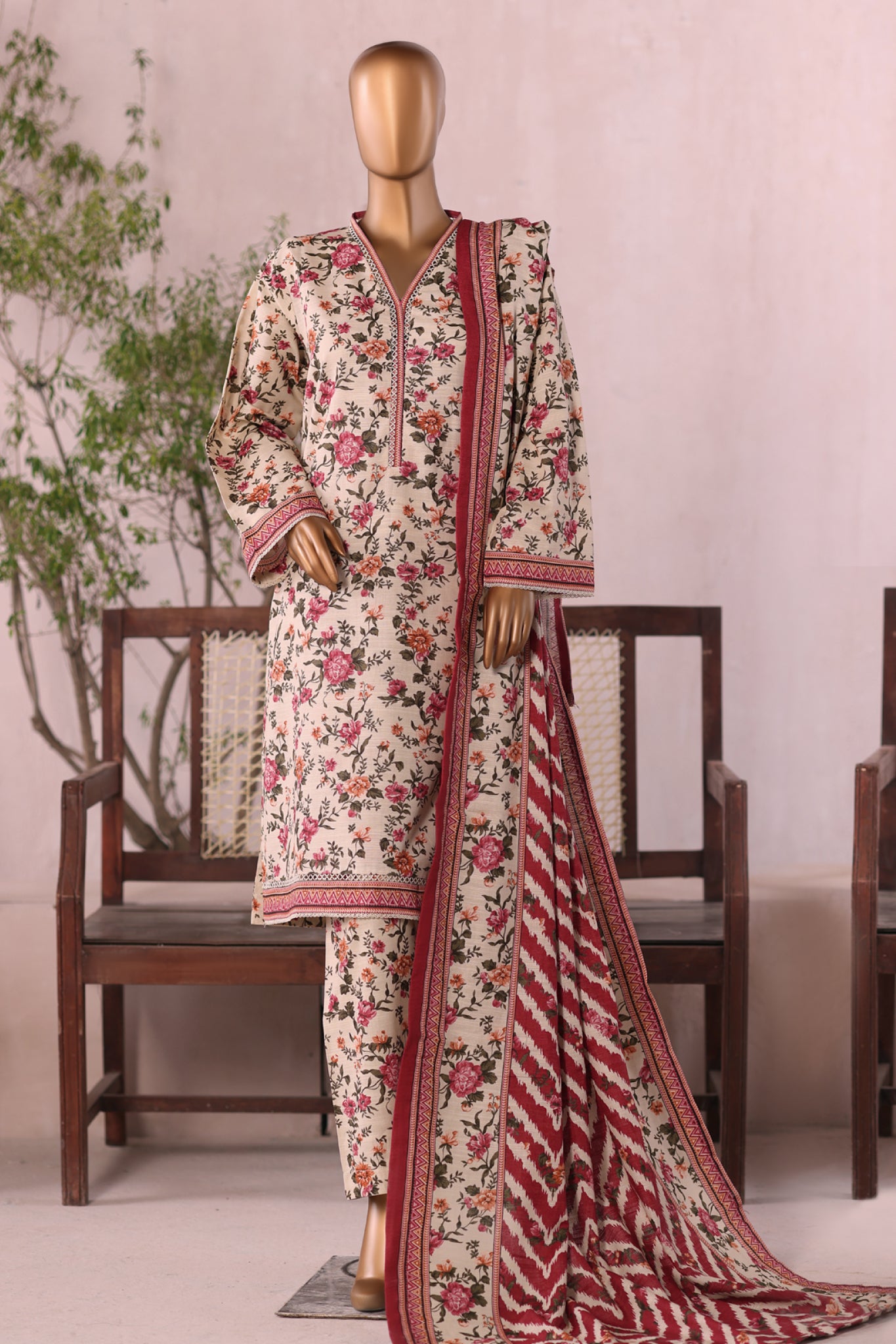 Bin Saeed Stitched 3 Piece Printed Khaddar Vol-03 Collection'2025-WK-2380-Cream