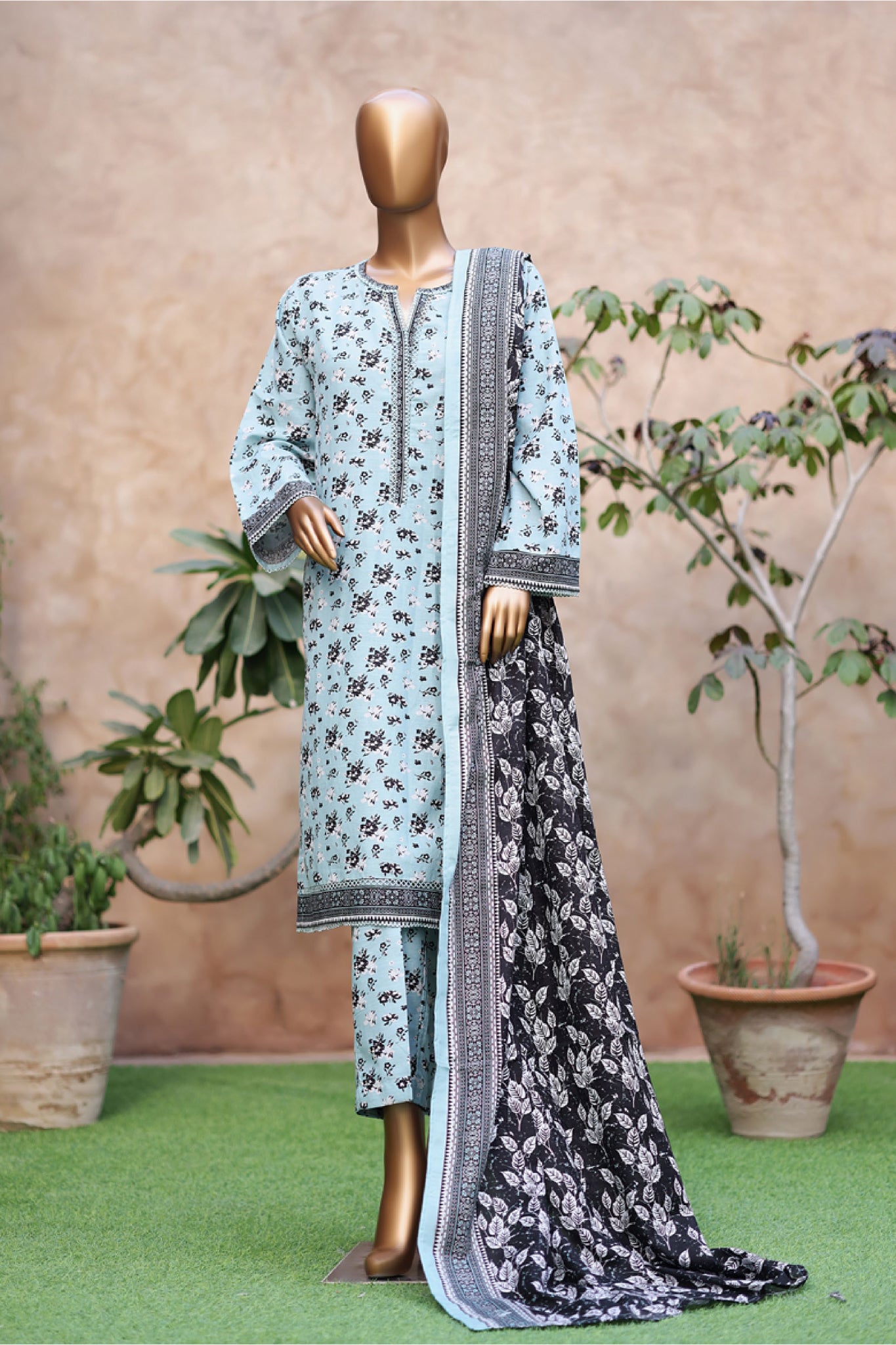 Bin Saeed Stitched 3 Piece Exclusive Printed Khaddar Vol-04 Collection'2025-WK-2392-Ferozi