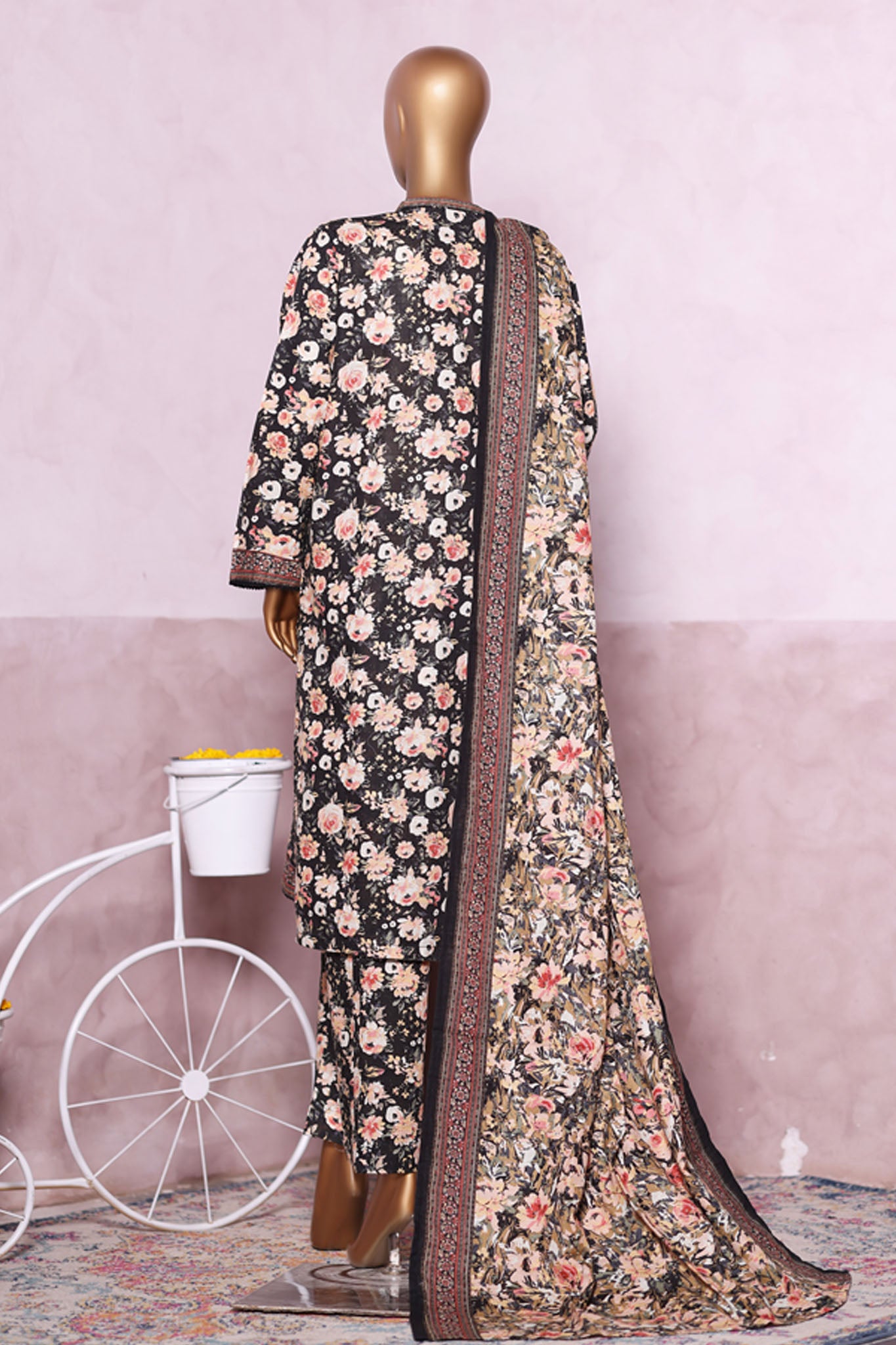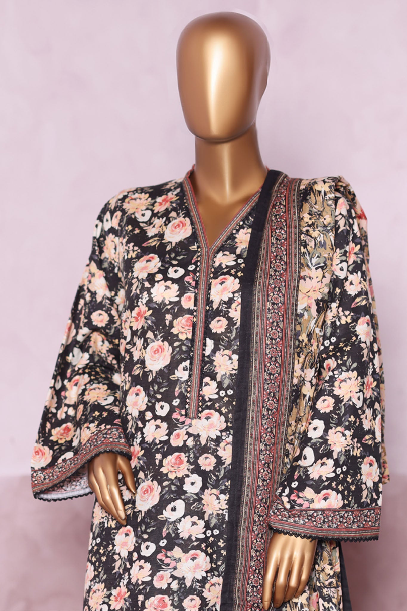 Bin Saeed Stitched 3 Piece Exclusive Printed Khaddar Vol-06 Collection'2025-WK-2446-Black