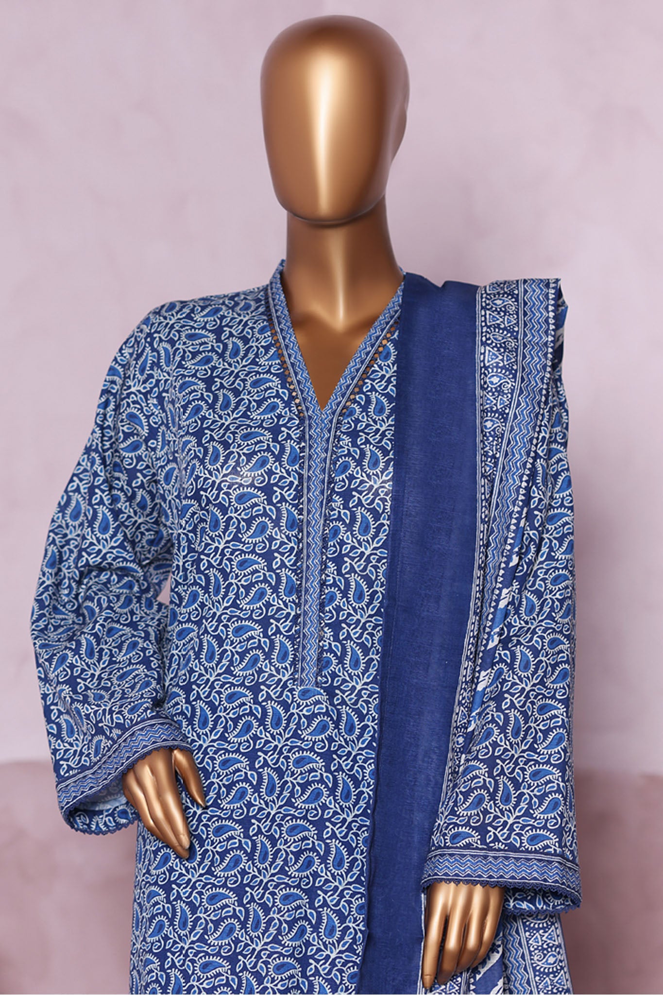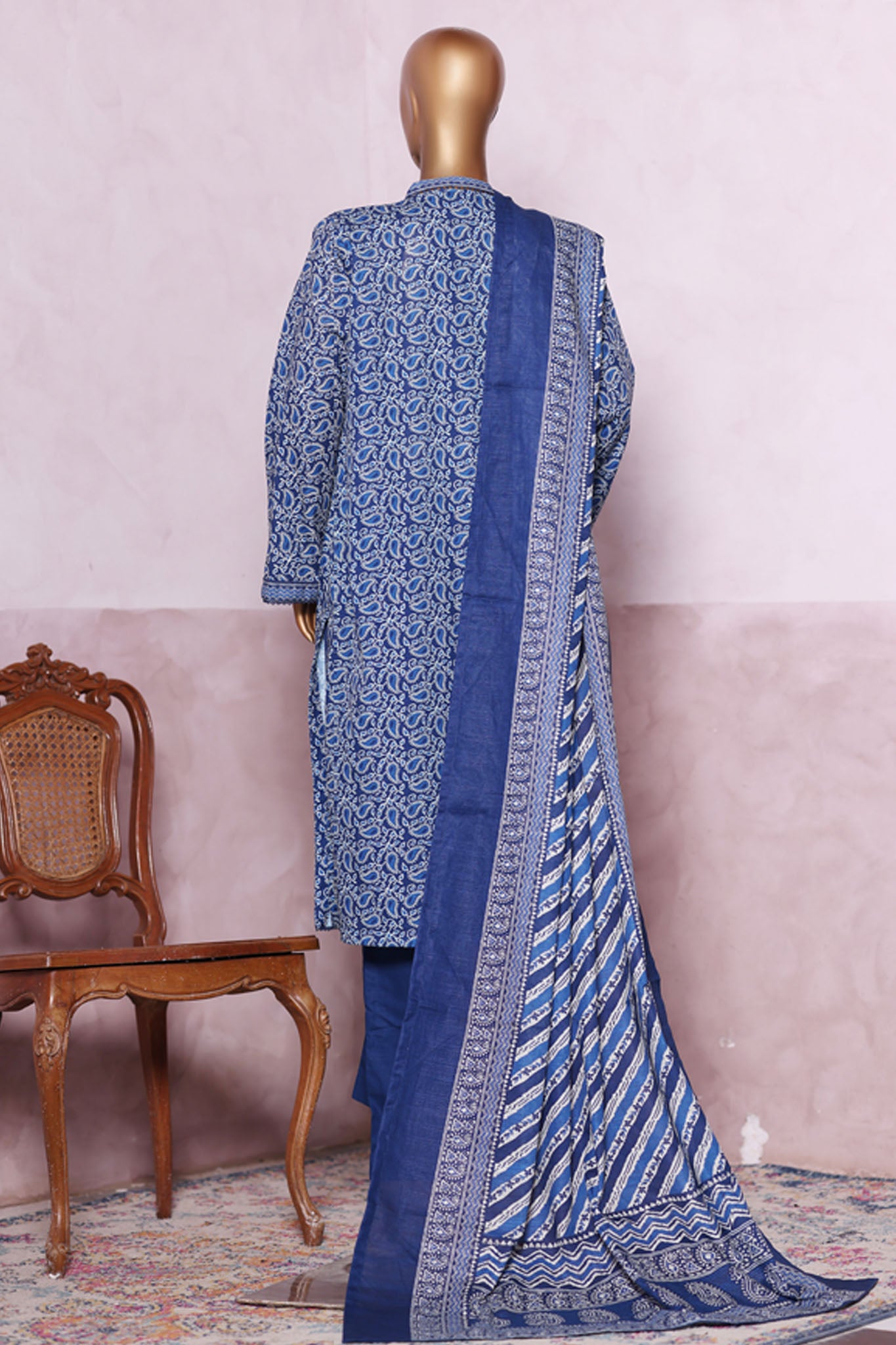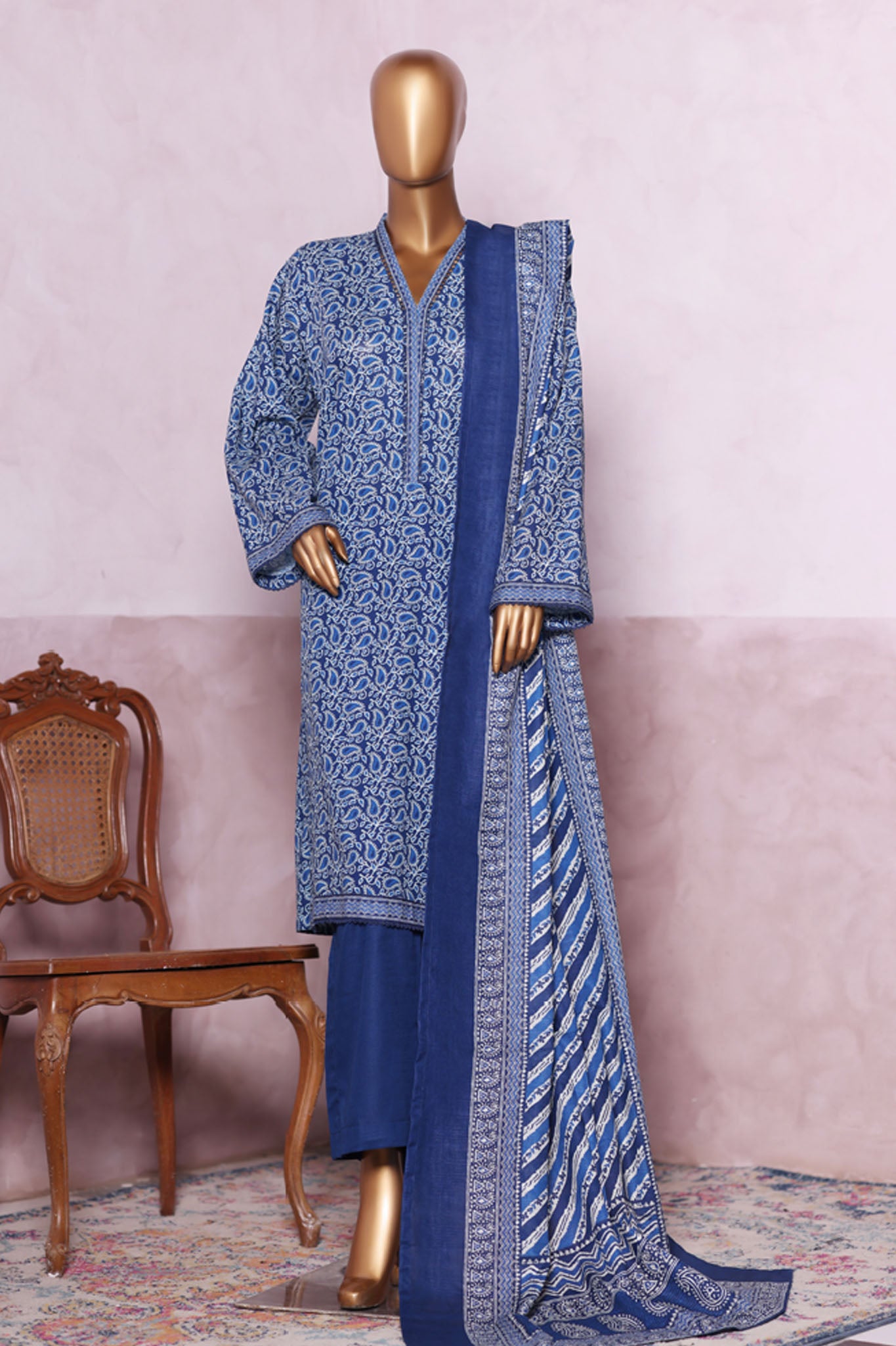 Bin Saeed Stitched 3 Piece Exclusive Printed Khaddar Vol-06 Collection'2025-WK-2452-Blue