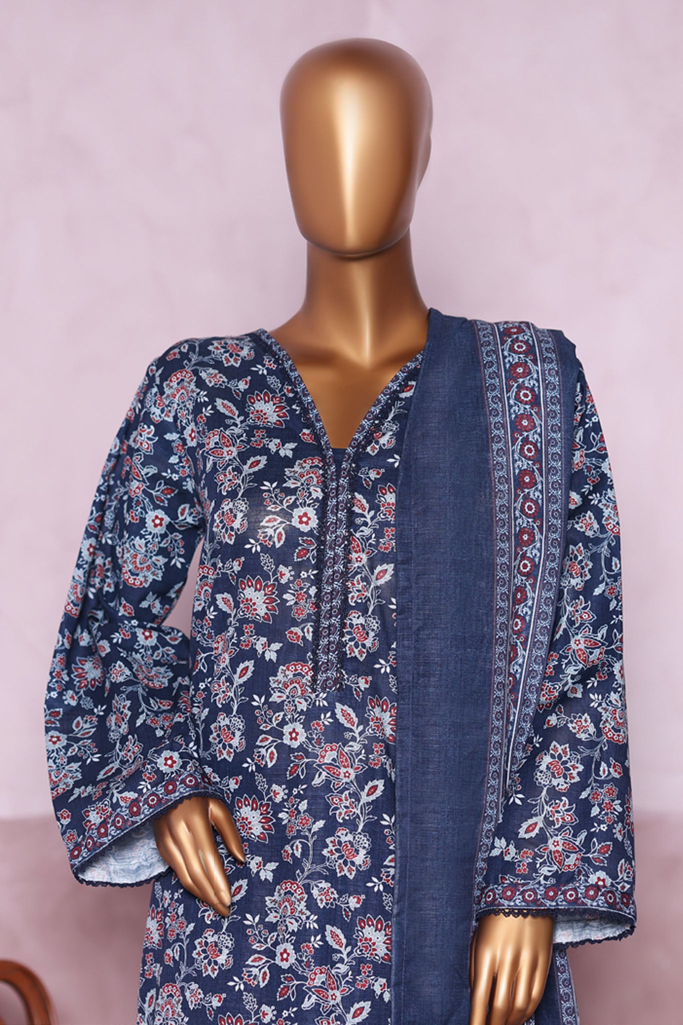 Bin Saeed Stitched 3 Piece Exclusive Printed Khaddar Vol-06 Collection'2025-WK-2455-Blue