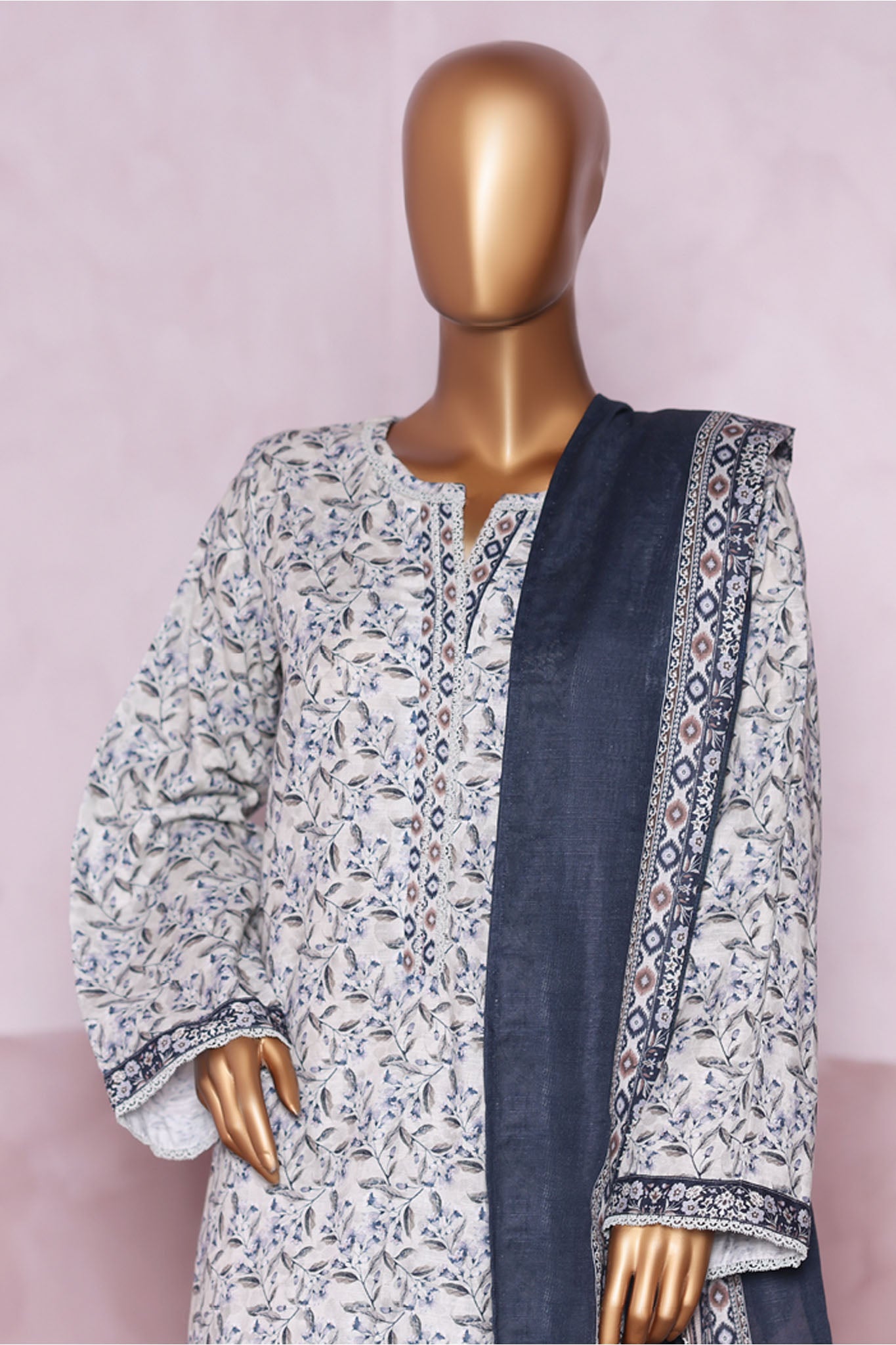 Bin Saeed Stitched 3 Piece Exclusive Printed Khaddar Vol-06 Collection'2025-WK-2457-Gray
