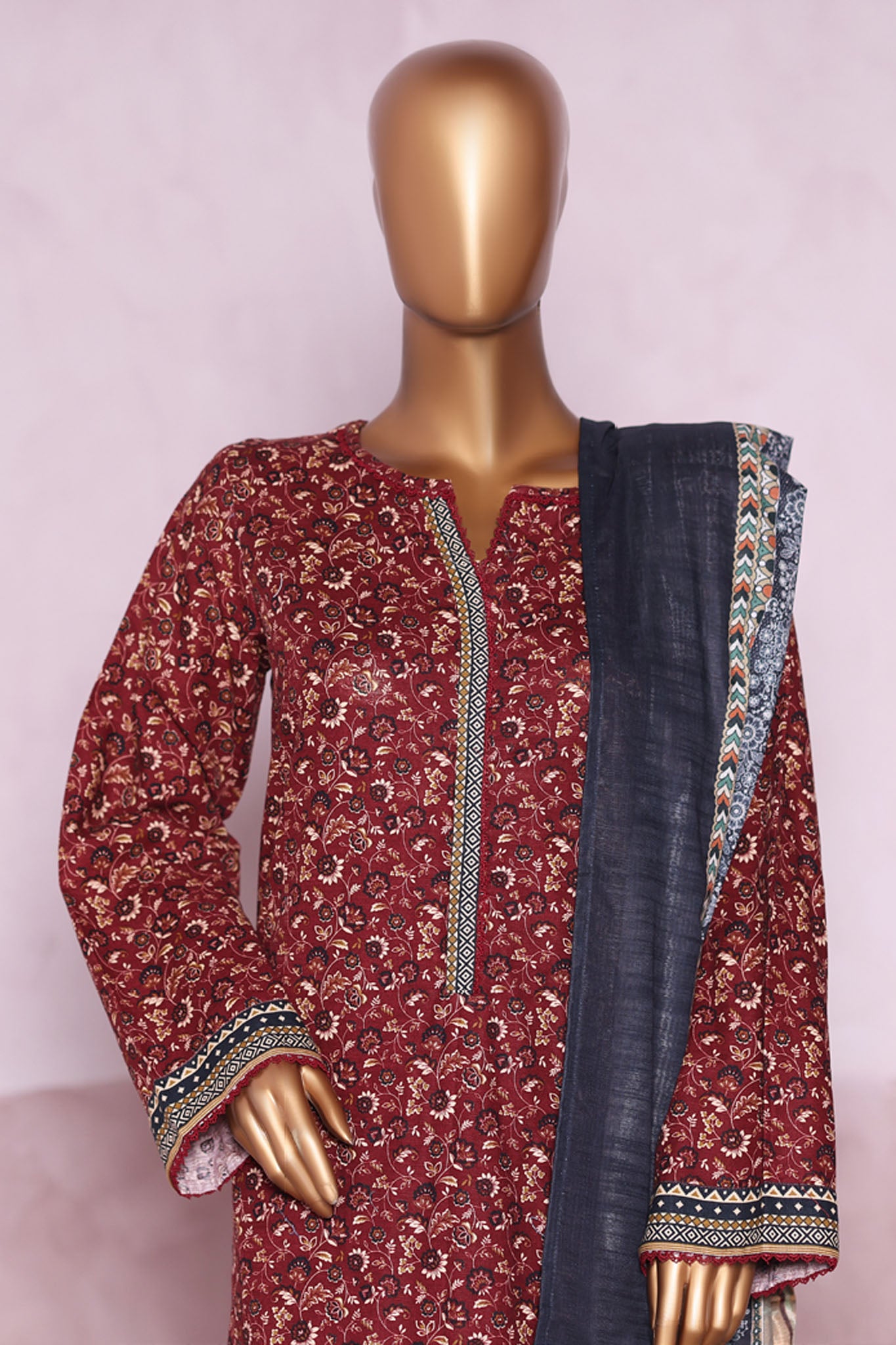 Bin Saeed Stitched 3 Piece Exclusive Printed Khaddar Vol-06 Collection'2025-WK-2459-Maroon