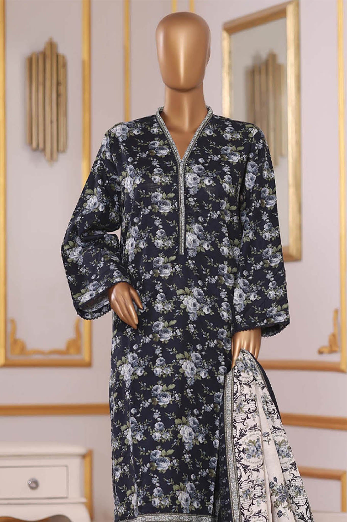 Bin Saeed Stitched 3 Piece Exclusive Printed Khaddar Vol-09 Collection'2025-WK-2514-Black