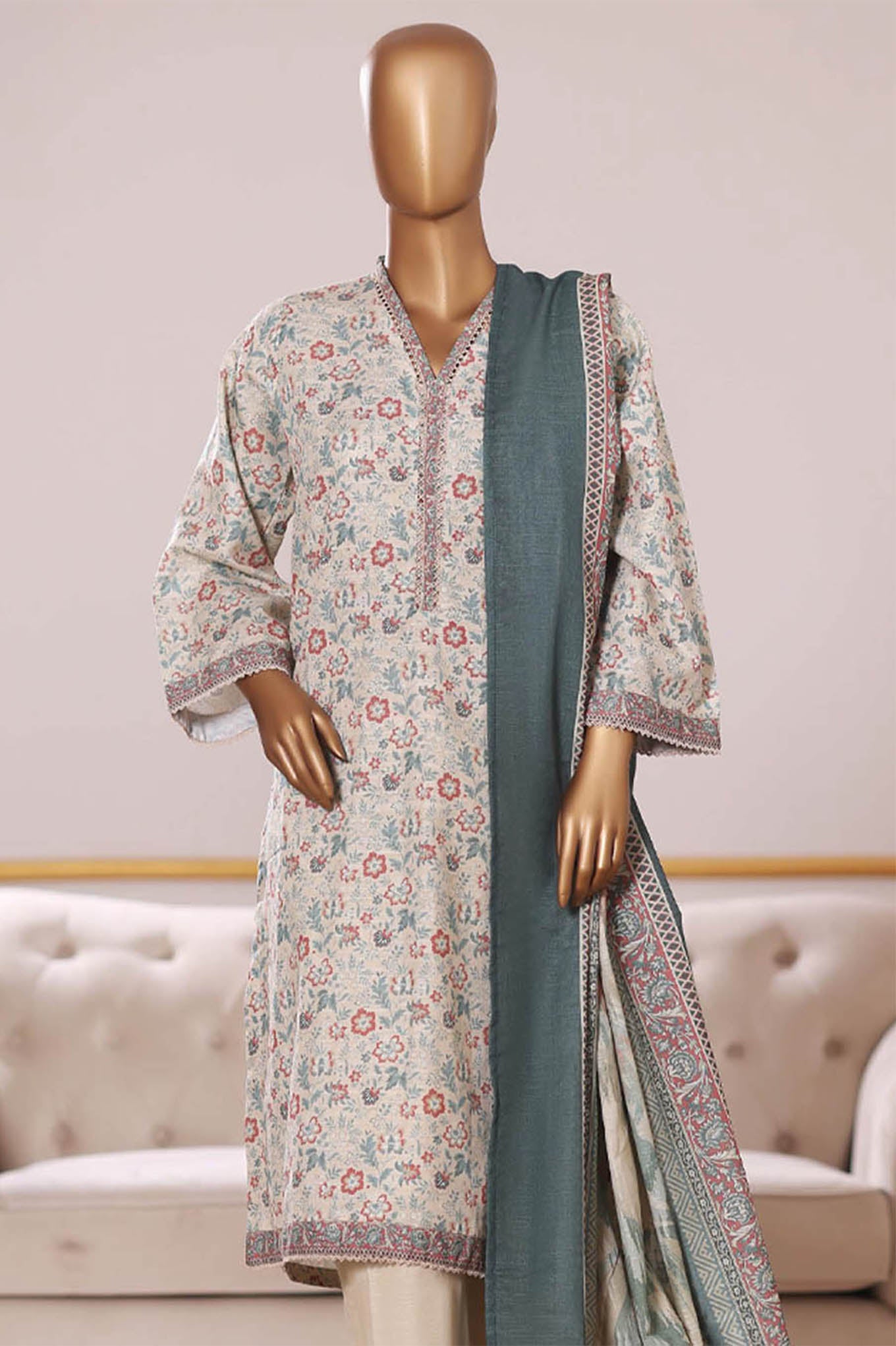 Bin Saeed Stitched 3 Piece Exclusive Printed Khaddar Vol-09 Collection'2025-WK-2518-Cream