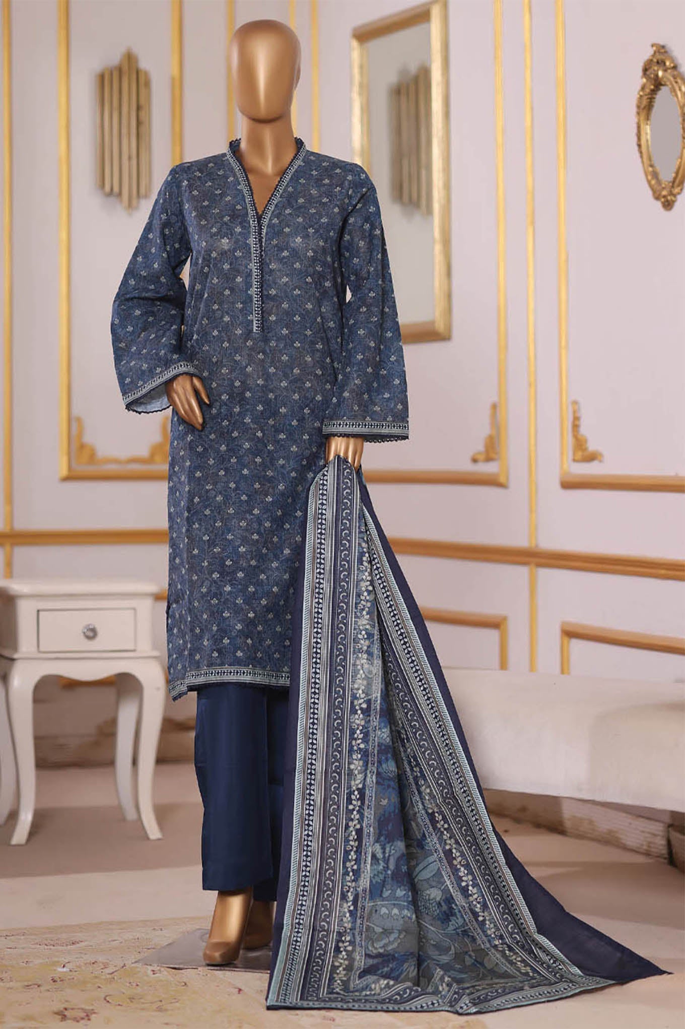 Bin Saeed Stitched 3 Piece Exclusive Printed Khaddar Vol-09 Collection'2025-WK-2523-Navy Blue