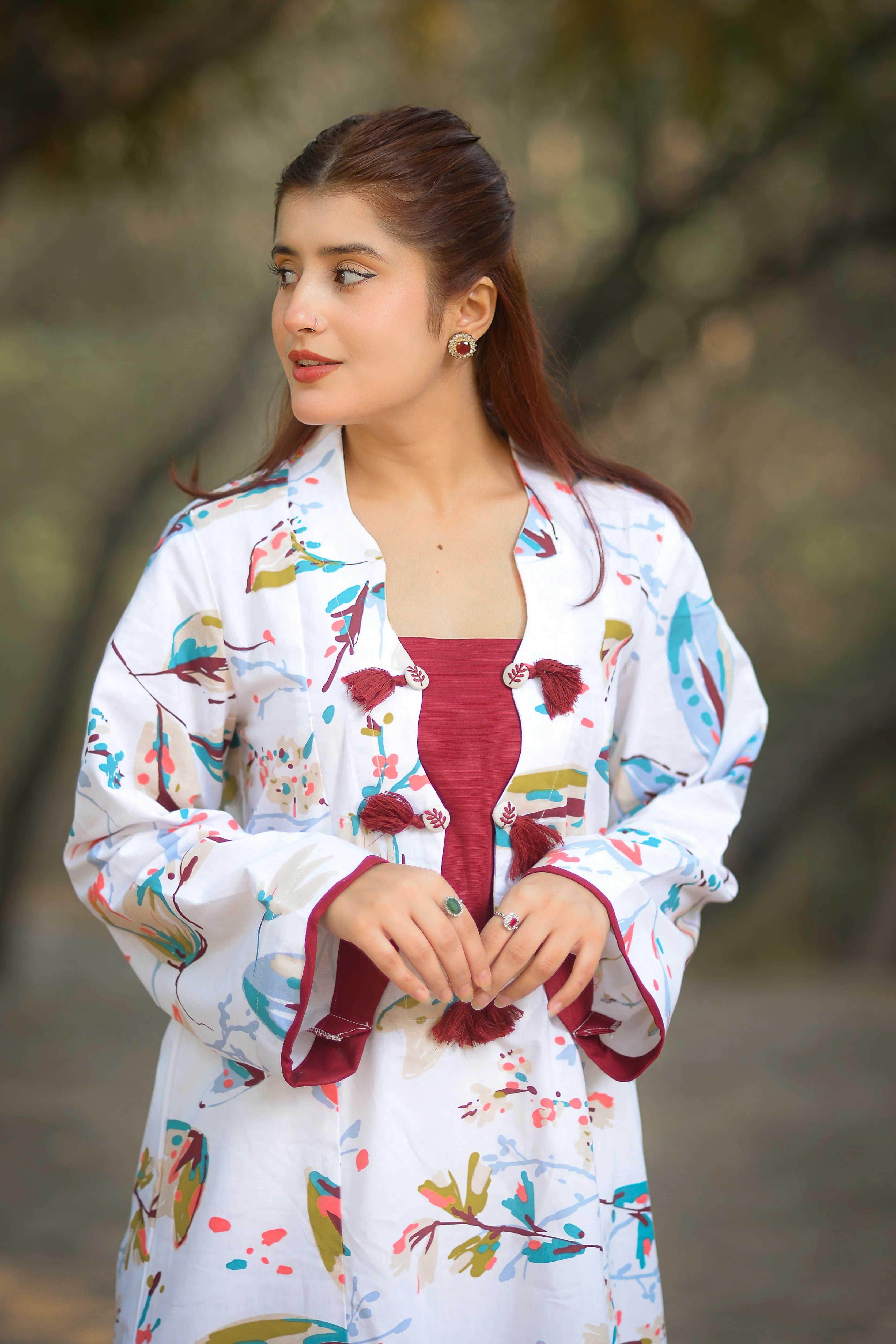 Details: Patchwork front & embroidered buttons