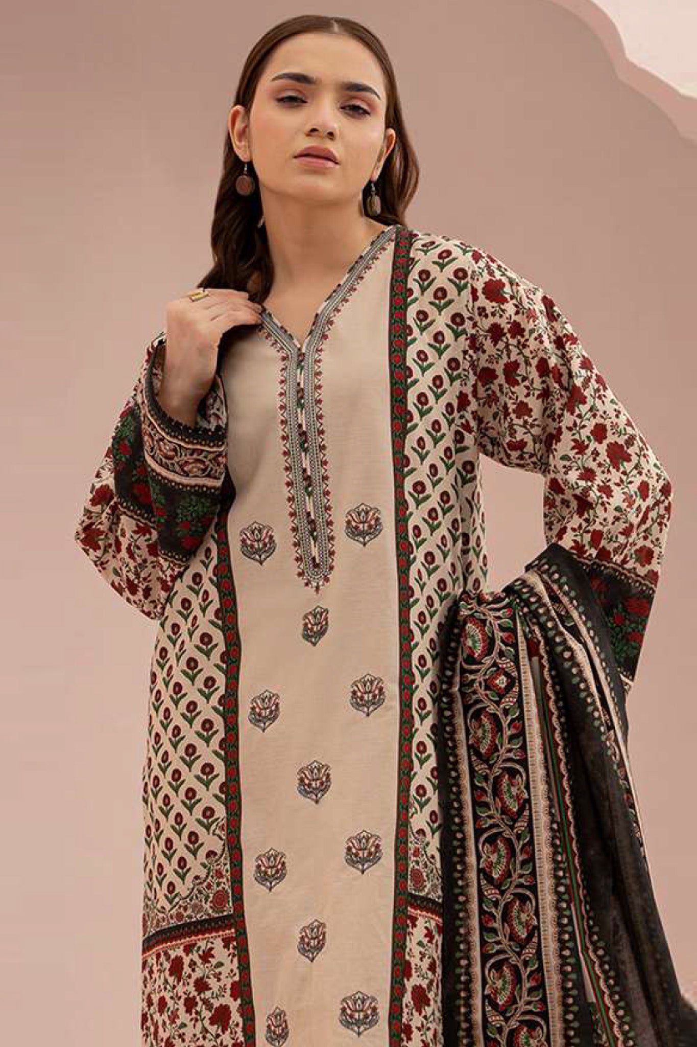 Bin Saeed Stitched 3 Piece Printed Khaddar Vol-03 Collection'2025-WK-2382-Maroon