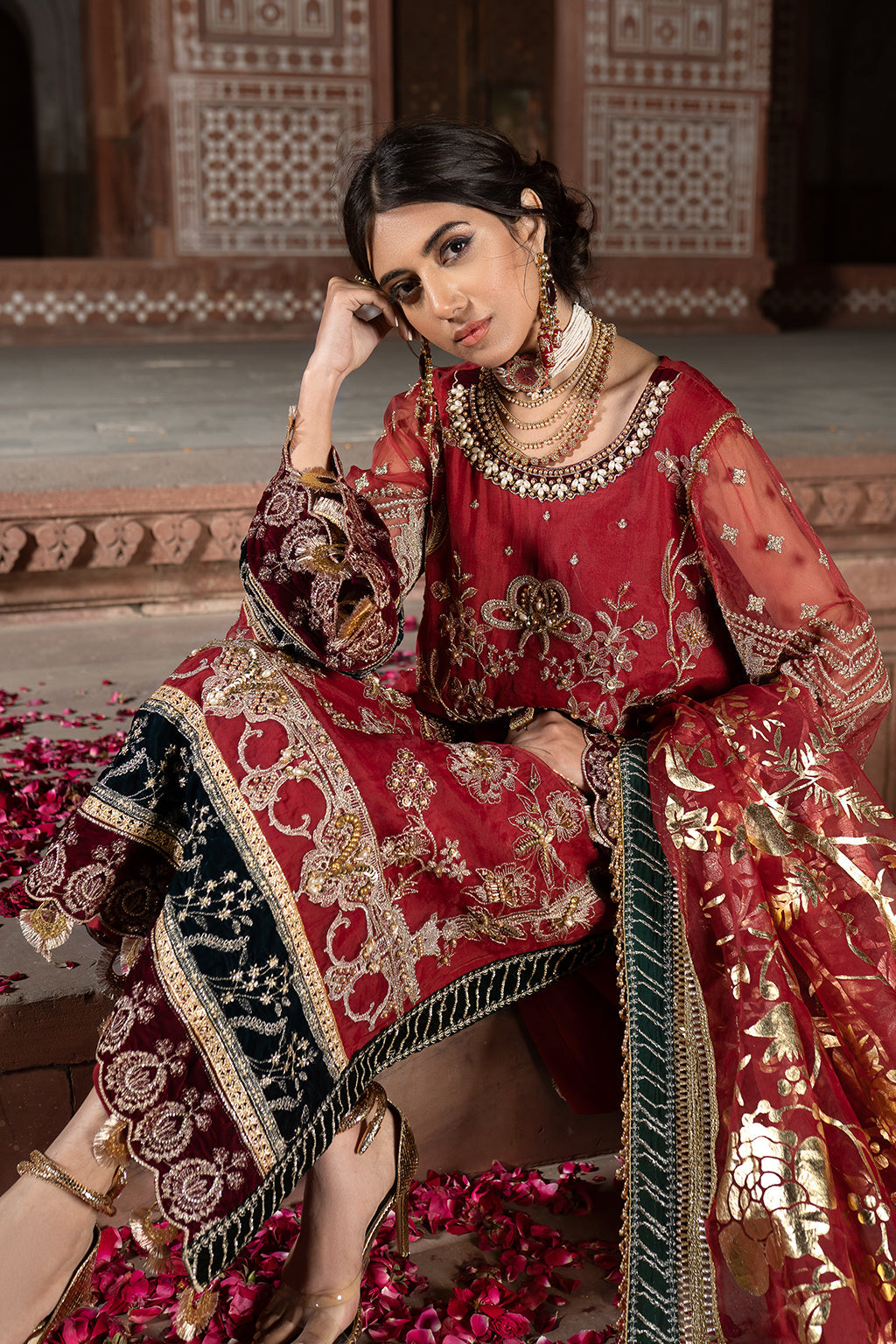 • Embroidered velvet front & back border ( 2m )