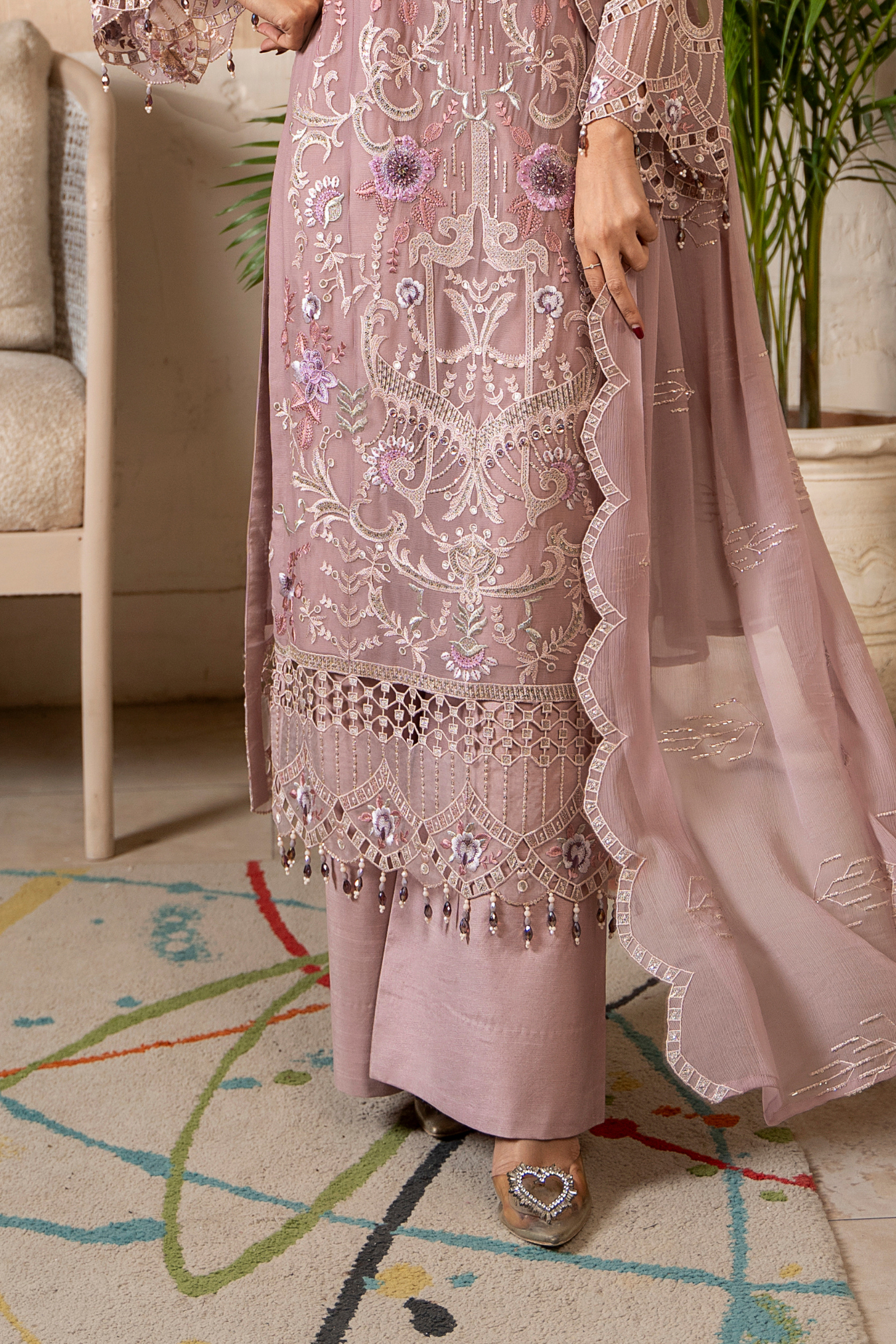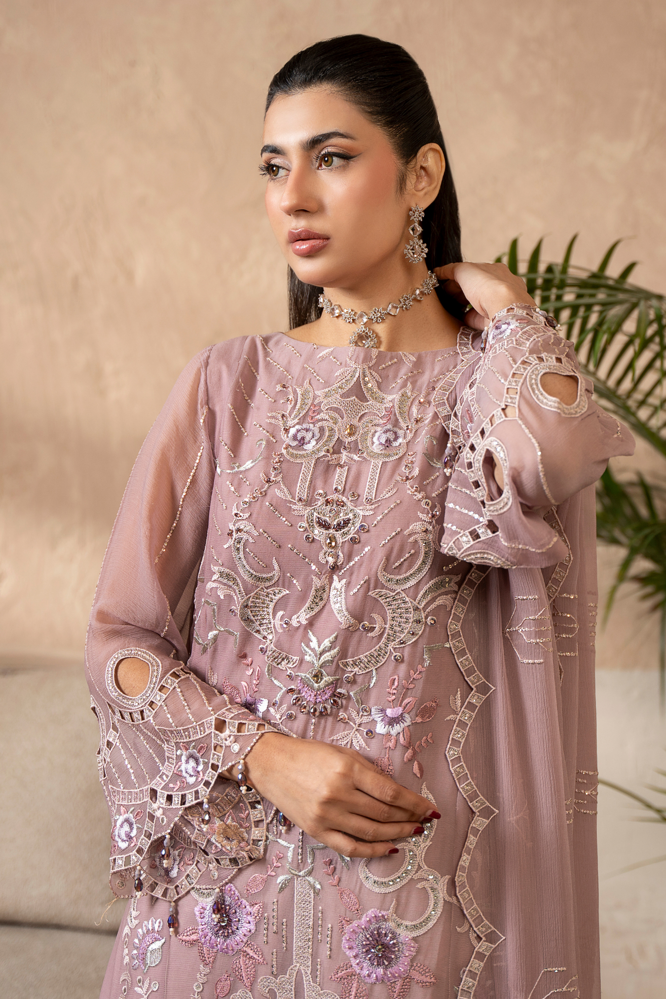 Embroidered weightless chiffon front with hand-embellished work – 1 yds