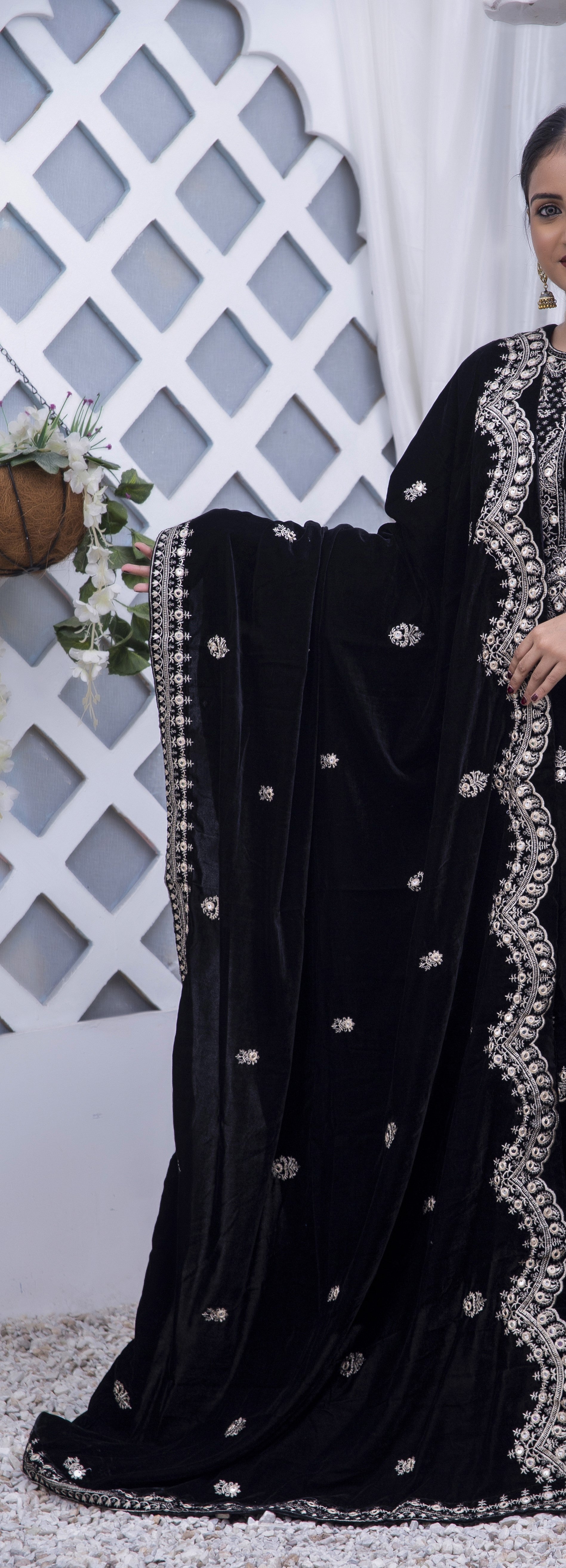 A masterpiece of textile art. This exquisite shawl is made from premium, known for its deep color and luxurious drape. It is meticulously detailed with traditional Zari embroidery along all four edges and delicate floral motifs throughout the body. Perfect for wedding season, festive occasions, or elevating your winter wardrobe. Dry clean only to preserve its heritage craft