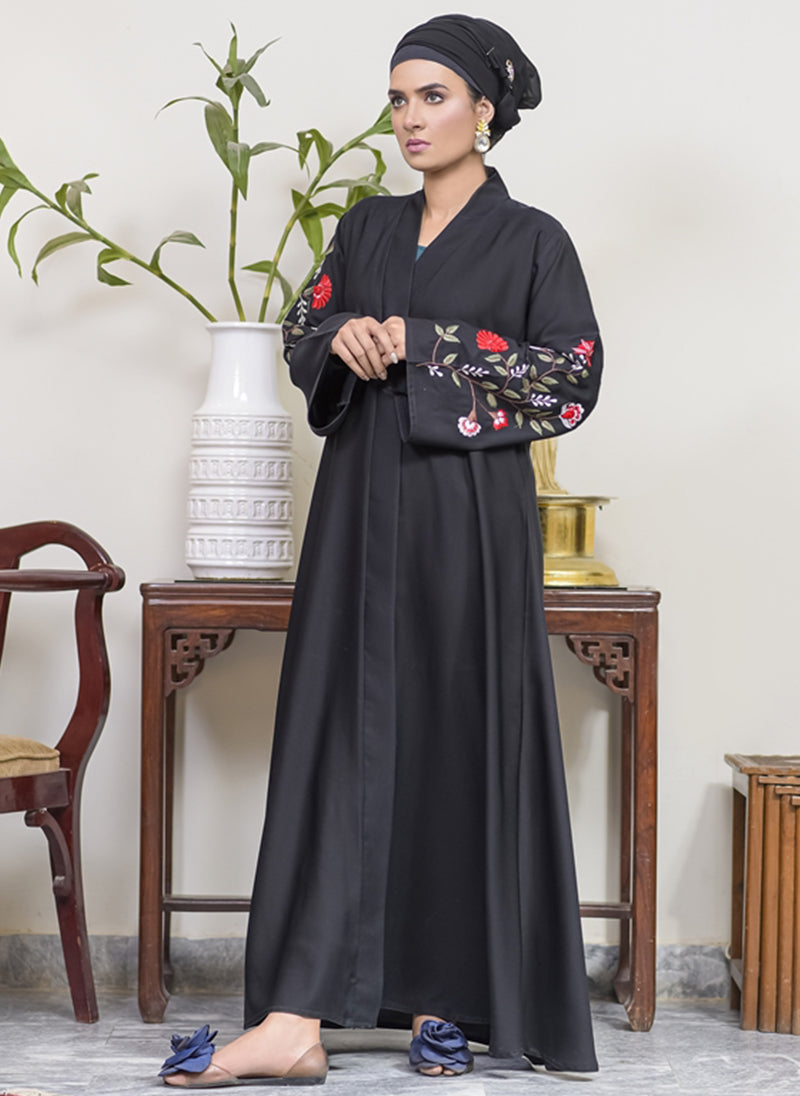 Note: If customer changes the Abaya colour rather than choosing the same colour given in the picture, Embroidery and stones colour will be change of same or contras colour depends on the design of the Abaya. Any printed fabric placed on the Abaya would be change at the time of order if not available in Stock.
