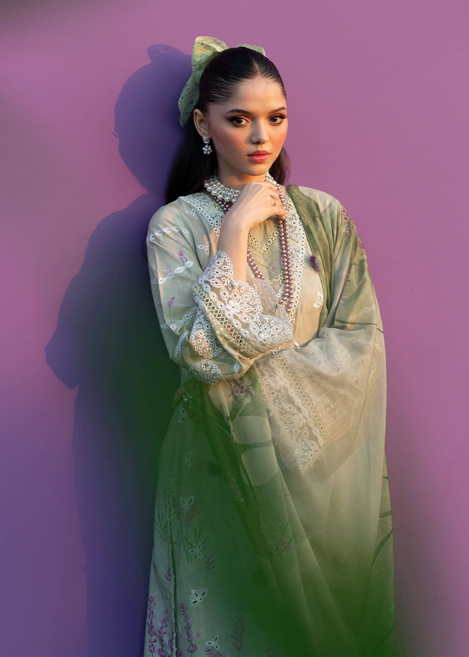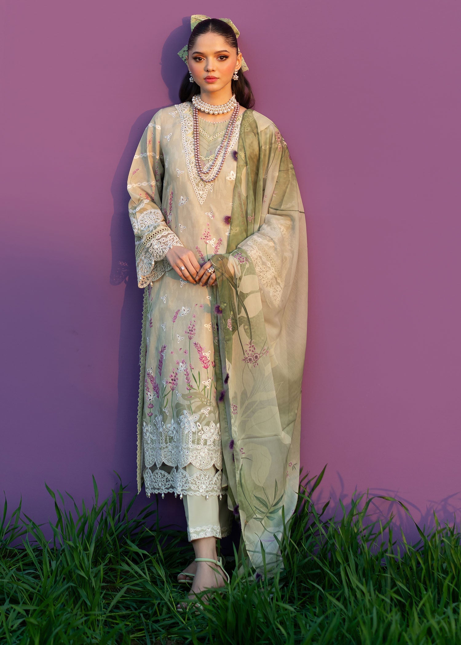 • Embroidered sleeves border (Organza)