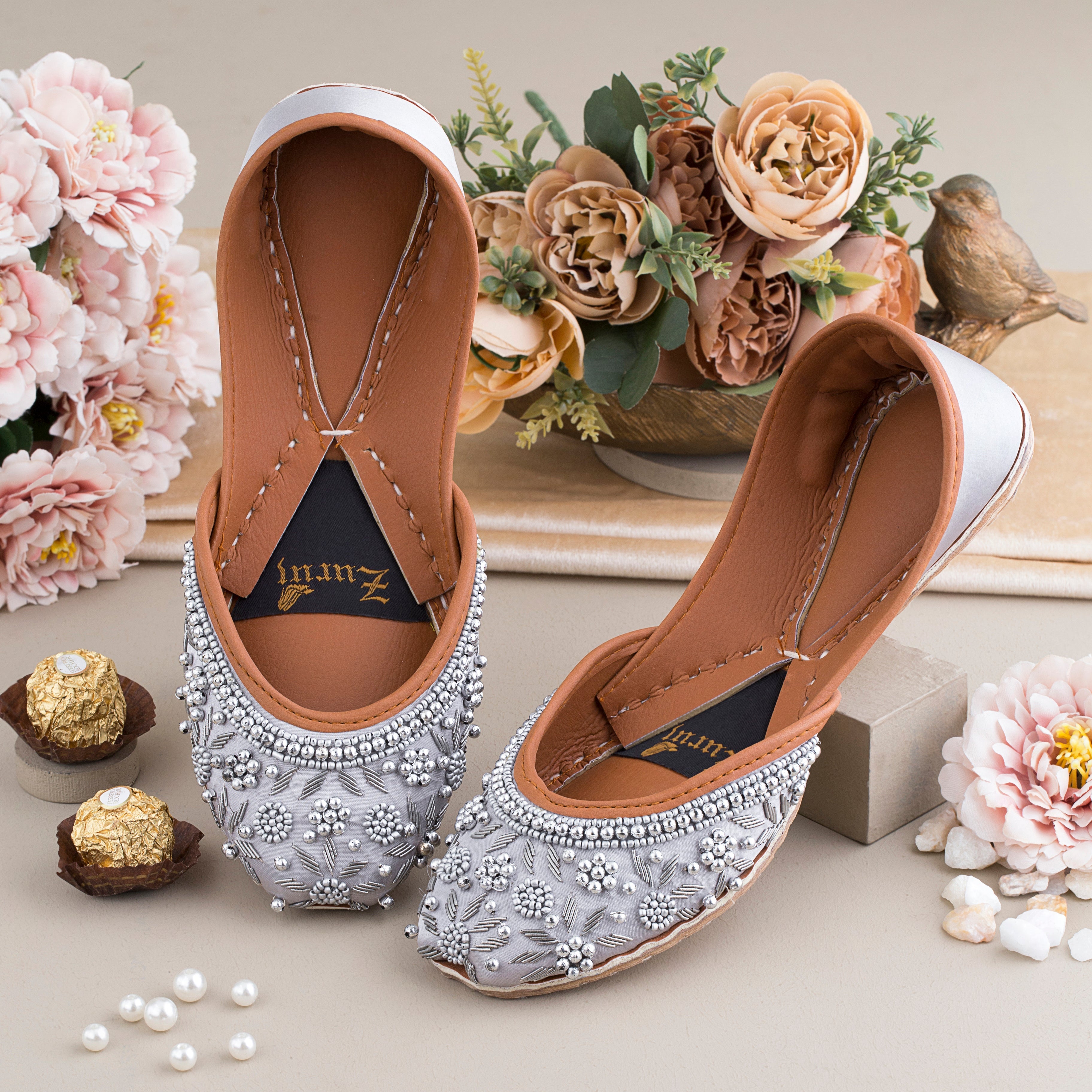 Zun-113-Silver is a quintessential exemplary of pleasant, luxurious and traditional artistry made on Silver color base with beautiful handmade work. These are the adorable heritages of Pakistan that are hand-sewed by determined cordwainers of rural areas to exhibit the utmost beauty of prepossessing feet.