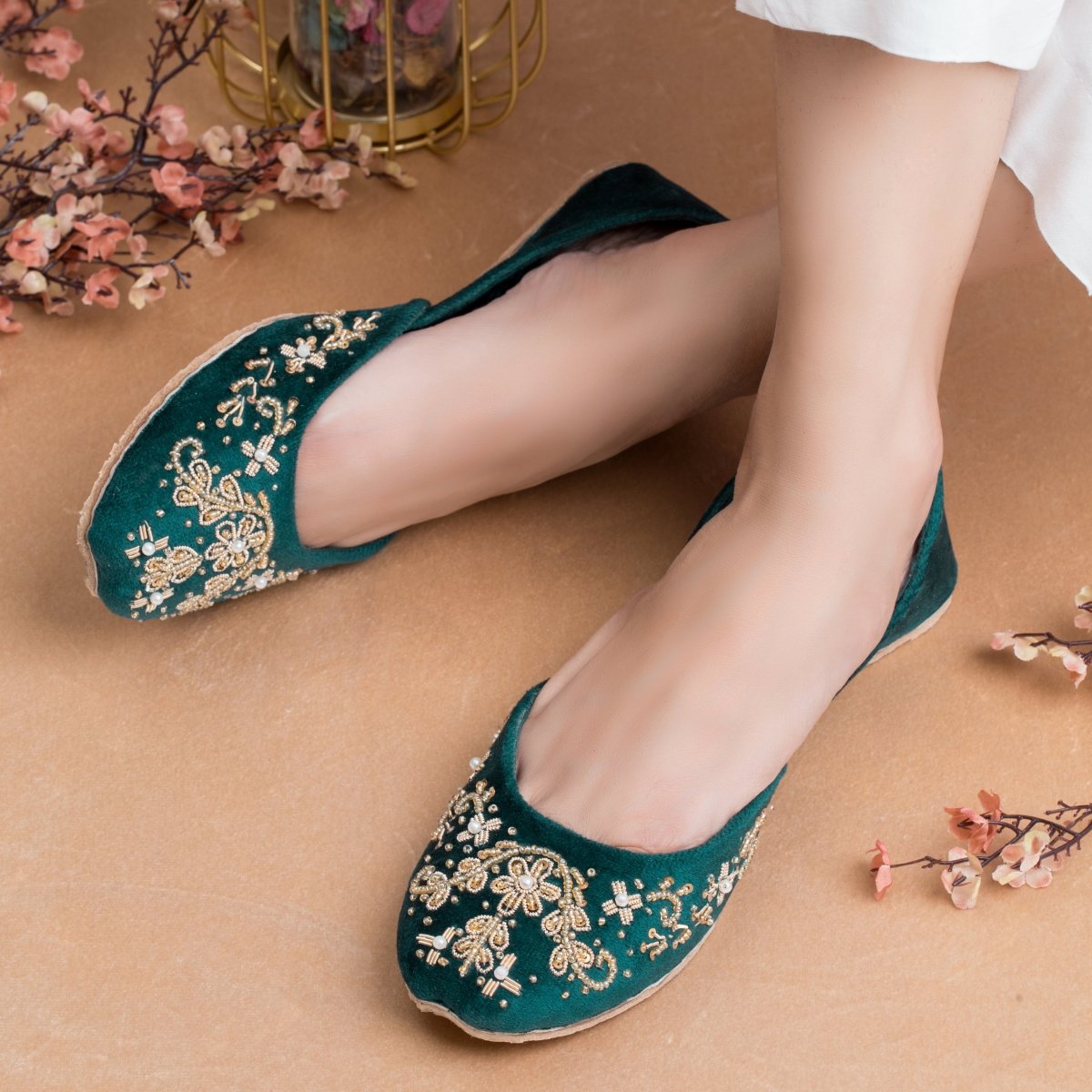 Zun-240-Bottle Green is a quintessential exemplary of pleasant, luxurious and traditional artistry made on Bottle Green color base with beautiful handmade work. These are the adorable heritages of Pakistan that are hand-sewed by determined cordwainers of rural areas to exhibit the utmost beauty of prepossessing feet.
