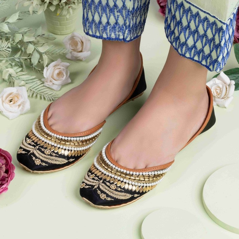 zun-259-Black is a quintessential exemplary of pleasant, luxurious and traditional artistry made on Black color base with beautiful handmade work. These are the adorable heritages of Pakistan that are hand-sewed by determined cordwainers of rural areas to exhibit the utmost beauty of prepossessing feet.