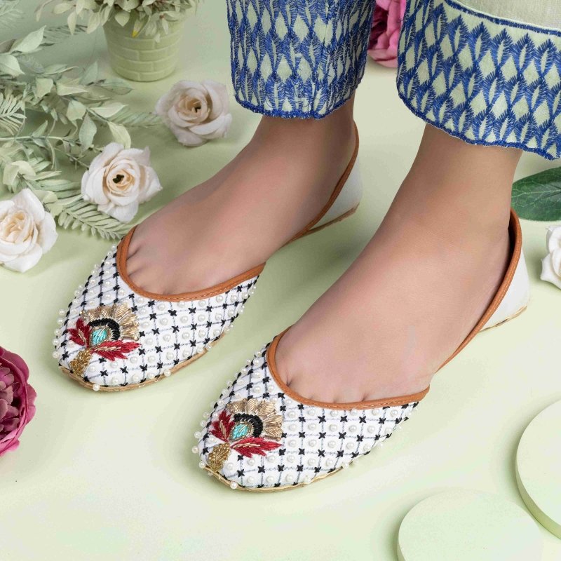 zun-266-White is a quintessential exemplary of pleasant, luxurious and traditional artistry made on White color base with beautiful handmade work. These are the adorable heritages of Pakistan that are hand-sewed by determined cordwainers of rural areas to exhibit the utmost beauty of prepossessing feet.