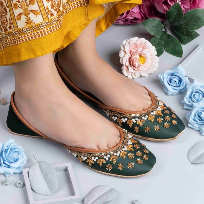 zun-267-Green is a quintessential exemplary of pleasant, luxurious and traditional artistry made on Green color base with beautiful handmade work. These are the adorable heritages of Pakistan that are hand-sewed by determined cordwainers of rural areas to exhibit the utmost beauty of prepossessing feet.