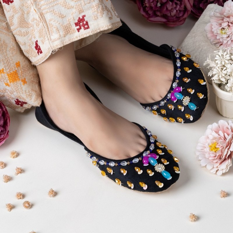 zun-272-Black is a quintessential exemplary of pleasant, luxurious and traditional artistry made on Black color base with beautiful handmade work. These are the adorable heritages of Pakistan that are hand-sewed by determined cordwainers of rural areas to exhibit the utmost beauty of prepossessing feet.