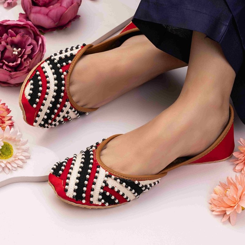 Zun-285-Red is a quintessential exemplary of pleasant, luxurious and traditional artistry made on Red color base with beautiful handmade work. These are the adorable heritages of Pakistan that are hand-sewed by determined cordwainers of rural areas to exhibit the utmost beauty of prepossessing feet.