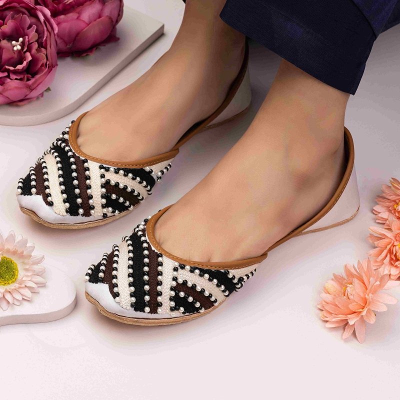 Zun-285-White is a quintessential exemplary of pleasant, luxurious and traditional artistry made on White color base with beautiful handmade work. These are the adorable heritages of Pakistan that are hand-sewed by determined cordwainers of rural areas to exhibit the utmost beauty of prepossessing feet.