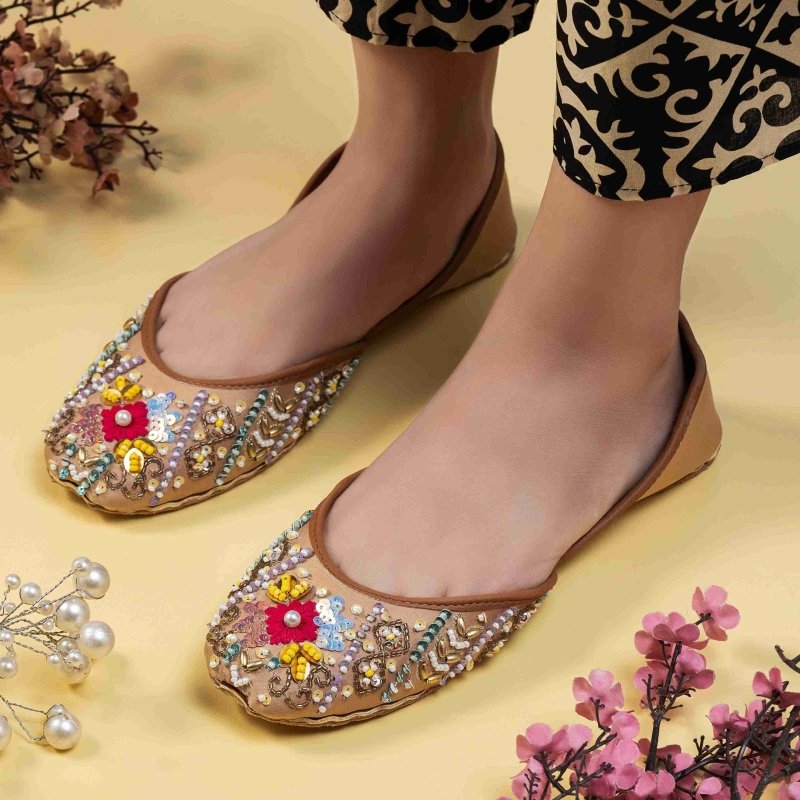 Zun-287-Golden is a quintessential exemplary of pleasant, luxurious and traditional artistry made on Golden base with beautiful embroidery work. These are the adorable heritages of Pakistan that are hand-sewed by determined cordwainers of rural areas to exhibit the utmost beauty of prepossessing feet.