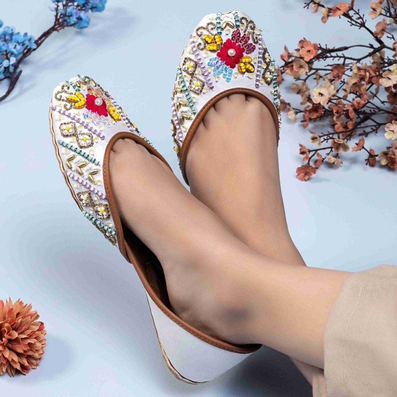 Zun-287-White is a quintessential exemplary of pleasant, luxurious and traditional artistry made on White base with beautiful embroidery work. These are the adorable heritages of Pakistan that are hand-sewed by determined cordwainers of rural areas to exhibit the utmost beauty of prepossessing feet.